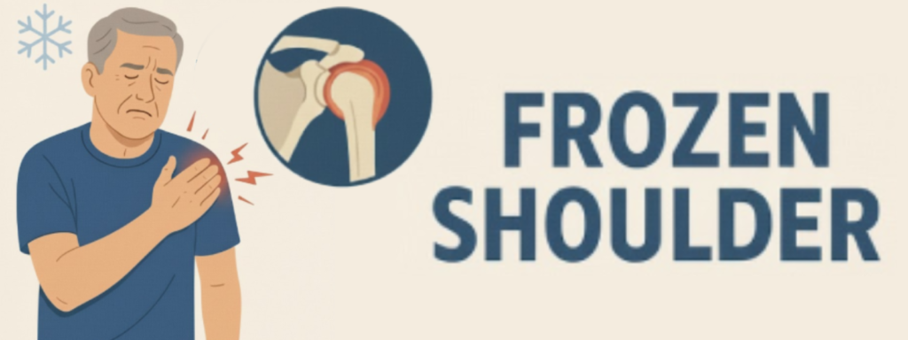 Frozen shoulder, also called adhesive capsulitis, is a condition where your shoulder becomes stiff, painful, and hard to move. It happens when the tissue around the shoulder joint becomes thick, tight, and inflamed — like it’s “frozen.”